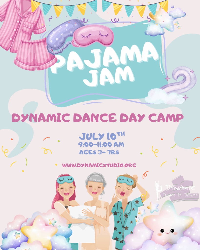 Roll out of bed and into the fun at Pajama Jam Camp! Dancers are invited to wear their favorite pajamas and get ready for a cozy yet high-energy camp filled with music, dance, tumbling, crafts, and more!