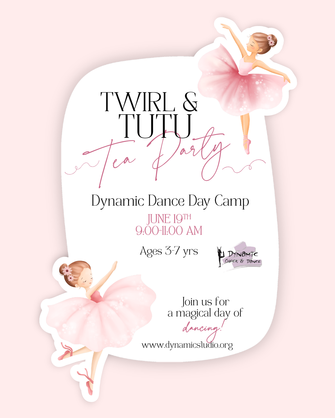 Put on your favorite tutu and get ready for a magical day of twirling, dancing, and tea party fun! In this whimsical camp, little dancers will explore creative movement, tumbling, basic dance steps, crafts and playful choreography all while using their imaginations.
